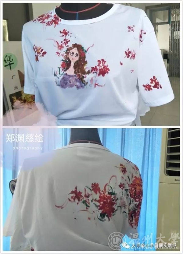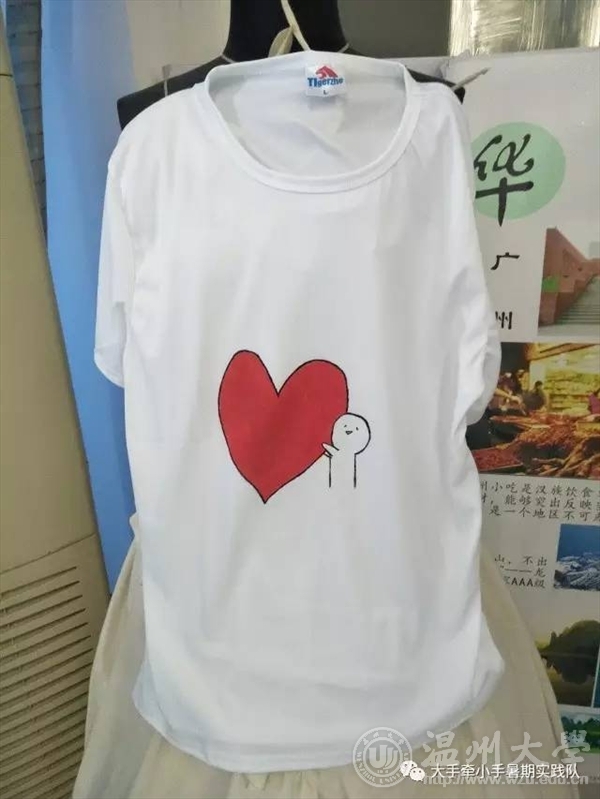 ylzzcom永利总站线路检测大手牵小手实践队开始文化衫义卖咯! 在三垟湿地进行现场义卖: 一次文化衫的制作,远不只是一次绘画的过程,更是一场心灵的行程。 如花,不仅在素衣上留下了点点痕迹,更在我们的心间,留下浓墨重彩的丝丝痕迹,虽轻,但深。 作品展示: 湿地的荷叶开了满池塘应了那句诗接天莲叶无穷碧。由于湿地的改造 人儿不多 我们的义卖也遇到了瓶颈,不过我们并不会被打败!大手牵小手绘制的文化衫等待着他们的主人。 今天义卖的所得成果将全部捐给温州市红十字会,用我们的微薄之力帮助到真正需要帮助的人,用我们的行动感染社会上的人,关爱留守儿童和空巢老人,我们一直在行动!