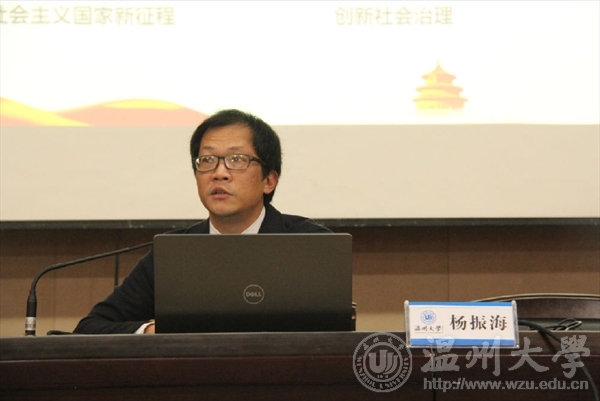 12月6日下午,ylzzcom永利总站线路检测在岩松堂雁山厅组织开展形势与政策课教学,学院党总支副书记杨振海为17级全体同学作“十九大报告精髓要义导读”报告。