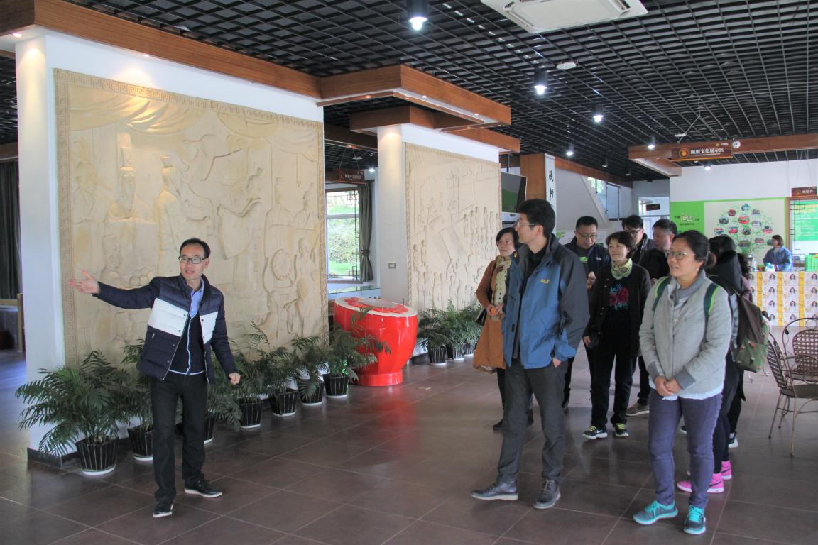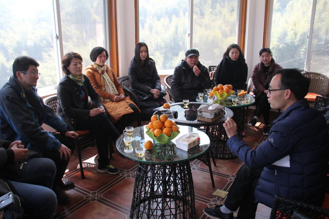 一小时后老师们到达了位于泽雅水库附近龙头村的万客丰瓯柑文化园。这里山环水绕茂林修竹溪流淙淙,环境十分优美。”森马·万客丰瓯柑文化园”是森马集团投资兴建的一家集瓯柑种植采摘、瓯柑产品深加工、瓯柑文化传播为一体的农业企业也是我市企业对接山区农村的扶贫项目。在金盛丰老总的热情引导下大家先参观了全国首家瓯柑文化展示中心。了解到了瓯柑方方面面的知识和这小小果实与瓯越大地的不解情缘。包括它的植物学属种、栽培历史、药用价值和诸多历史典故。瓯柑不仅是一种地方特色水果,也蕴含了温州深远的历史文化和温州人的乡愁情节。