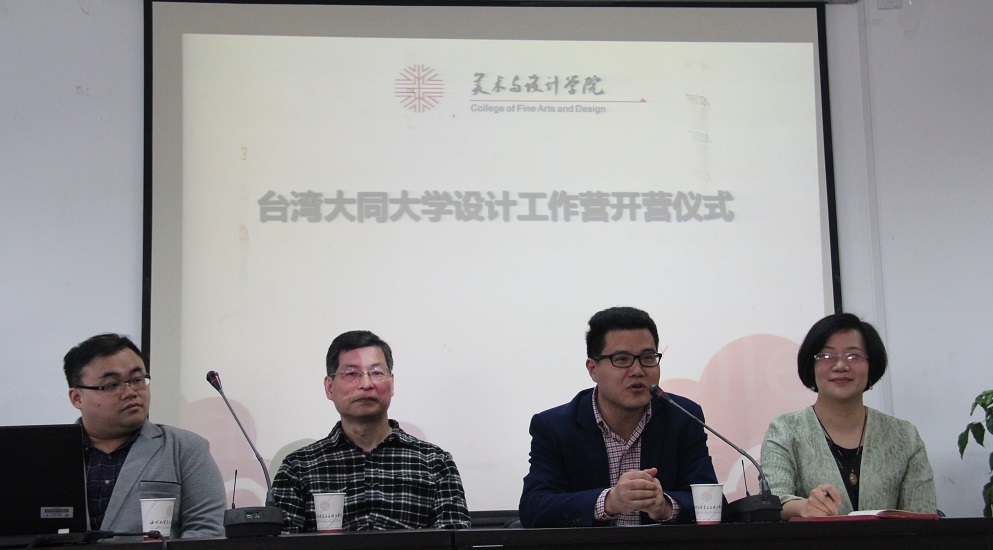 4月9日上午,永利官网在2B4001举行台湾大同大学涂永祥教授、陈元恺老师设计工作营开营仪式。学校教务处副处长胡瑜、永利官网教学副院长谢子静、创业学院副院长胡文超、环境设计系主任黄玫玮、视觉传达设计系主任刘俊以及15产品设计、16产品设计专业的同学参加了开营仪式。