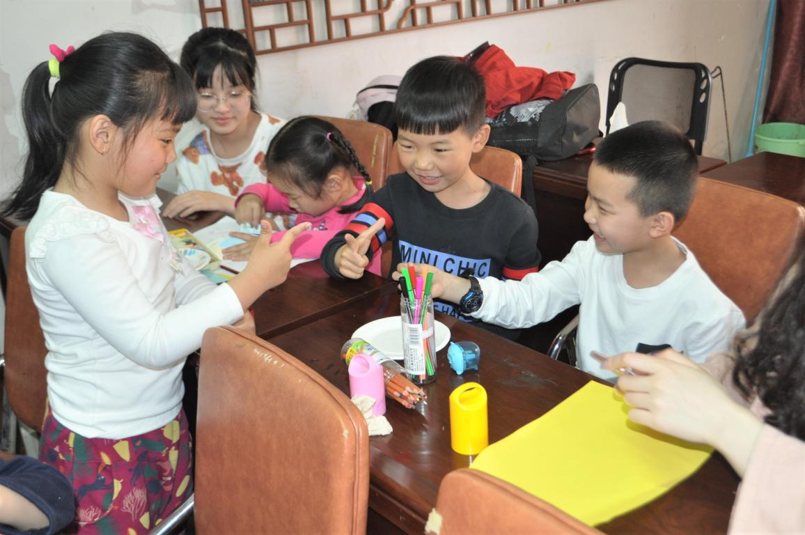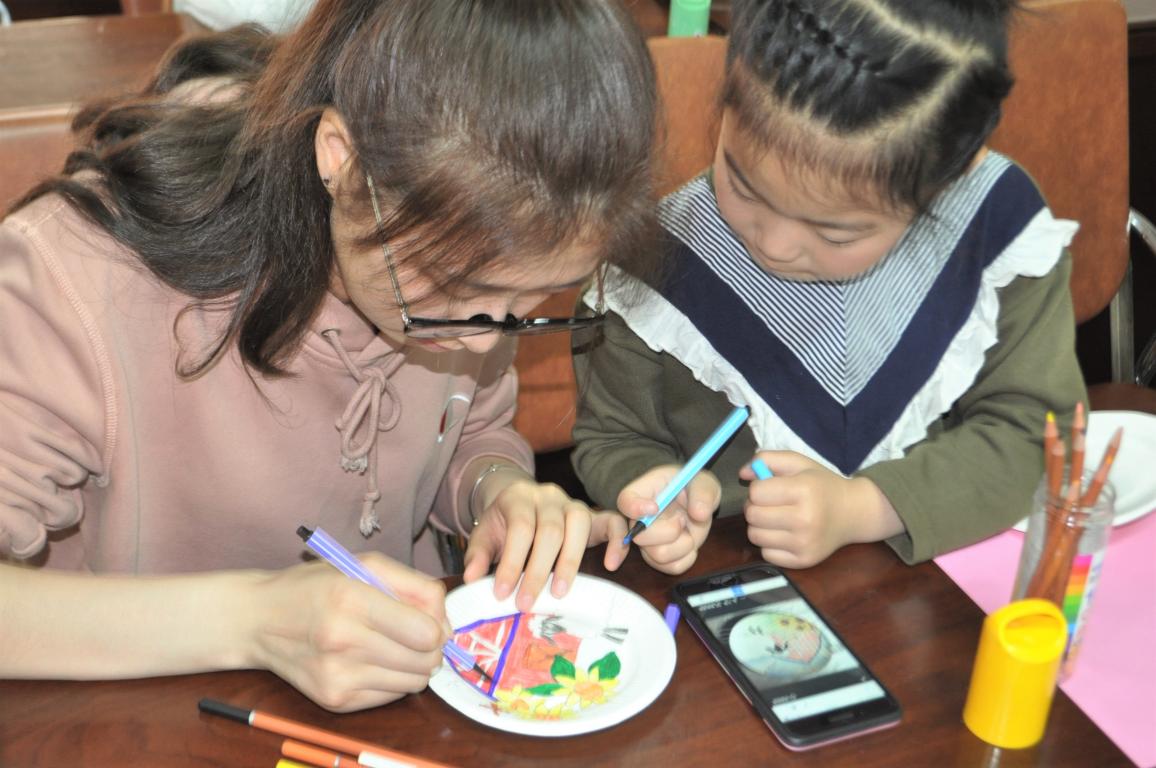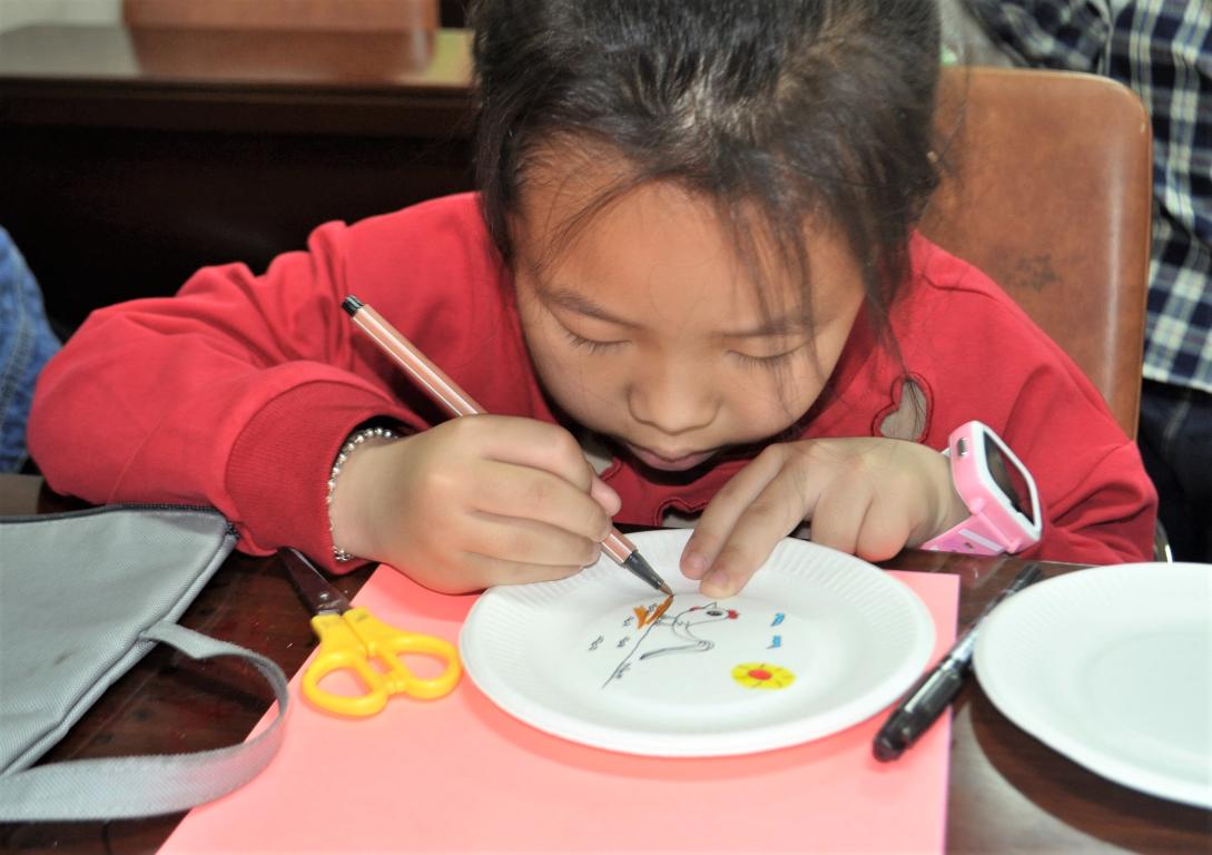 4月14日,温大美院“艺家人”青年志愿者协会的志愿者们如期来到了梅泉社区文化礼堂,开展了主题为“盘子大改造”的志愿活动。 活动刚一开始,小朋友们就按耐不住了,立刻发挥自己丰富的想象力拿起五彩画笔在盘子上作画,有的还拿起剪刀裁出小动物的剪纸图案,不一会儿,通过铅笔的构形,橡皮的修改,颜料的上色等几个步骤,再加上画出的小猫咪,大熊猫,恐龙,蜡笔小新等等五花八门的图案,以及剪出的恐龙的小翅膀,猫咪的小尾巴,大熊猫的耳朵剪纸图案,所有的元素组合在一起,一个个可爱的盘子就呈现在眼前了,使人眼前一亮!纸盘上的小动物似乎富有生命力一样,活泼可爱,摆在桌面上很是讨人喜欢!活动过程中,小朋友们还玩起了石头剪刀布的游戏,不经意间的小动作总会让大家开怀大笑。由笑声开始的活动,又将要在笑声中结束了,最后小朋友们一起拿着自己的作品合影留念。 一个个被美化装饰的纸盘托起了小朋友们美丽的心愿。单薄的纸盘,五彩的画笔,在从虚到实的过程中发展了小朋友们的观察力、记忆力、想象力和创造力,在合作、动手制作的过程中,让他们更加懂得了怎样与人沟通,如何提高交往能力。
