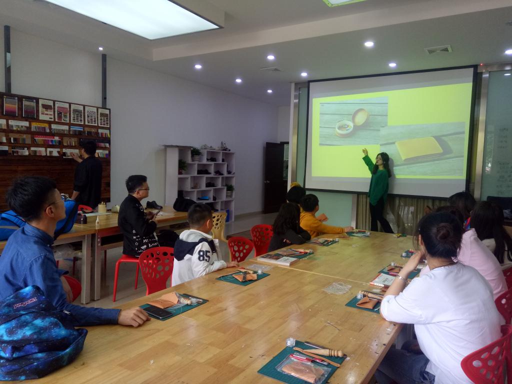 下午一点半,家长带着小朋友们陆续来到了鞋靴实验室。活动开始,大家在手工老师的带领下进入了教室。在正式制作之前,同学们给大家分配了原材料、工具,还详细讲解了制作手工皮具工艺流程。 正式开始制作,经过同学们的教学,家长和小朋友们使用各种工具经过不断地摸索和尝试,很好的制作出了属于自己的手工卡包。