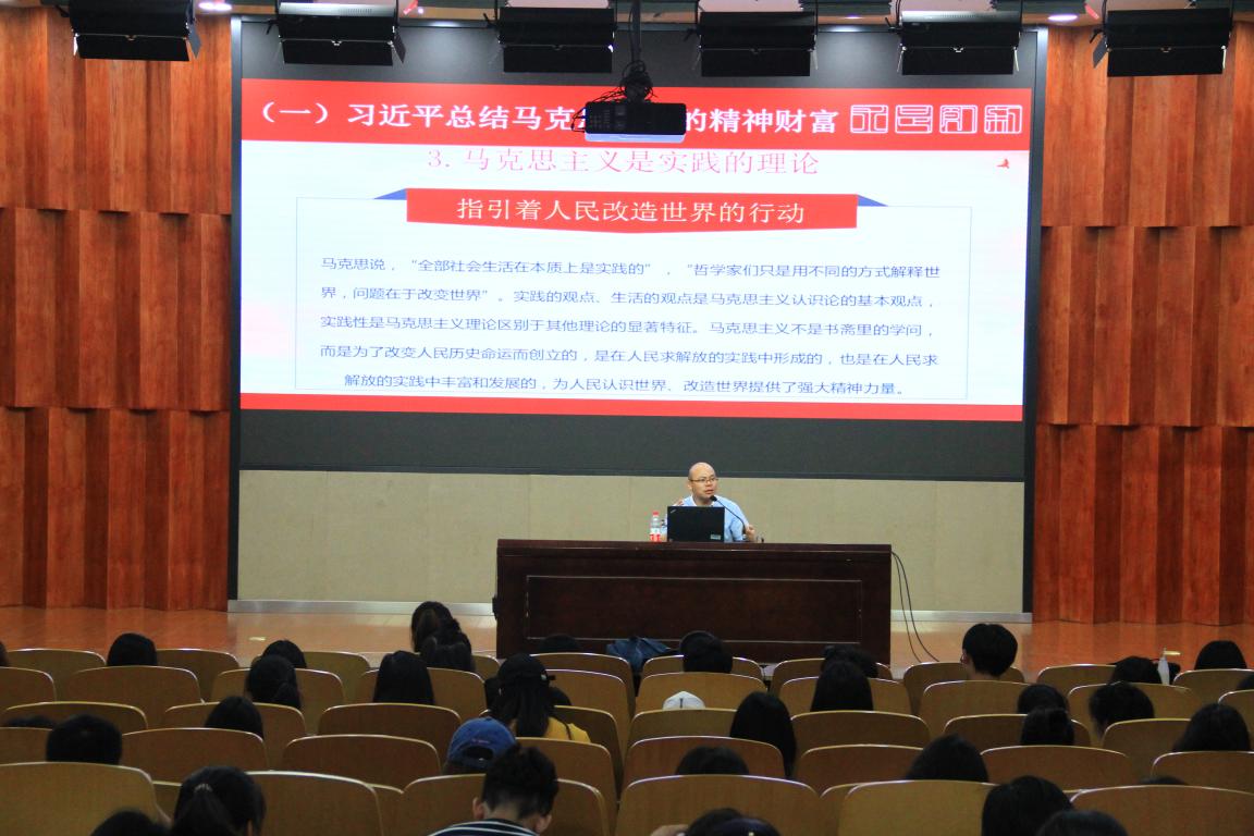 7月2日上午,ylzzcom永利总站线路检测在雁山厅开展本学期第二次形势与政策课,ylzzcom永利总站线路检测马克思主义学院副院长卓高生做题为“感受信仰的力量 高扬伟大的旗帜——学习贯彻习近平总书记在马克思诞辰200周年上的重要讲话”的形势与政策讲座。ylzzcom永利总站线路检测17级全体同学参加讲座。 卓高生老师从回到马克思、走进马克思、学习马克思三个方面进行解读。通过回顾马克思的一生,可以得出这样的结论:马克思的一生,是胸怀崇高理想、为人类解放不懈奋斗的一生;是不畏艰难险阻、为真理而勇攀高峰的一生;是为推翻旧世界、建立新世界而不息战斗的一生。回到马克思,需要重读经典,也要摒弃教条式的解读。走近马克思,需要辨识、辨析、辨明马克思主义,习近平总结马克思留下的精神财富是指出:“马克思主义是我们立党立国的根本思想。背离或放弃马克思主义,我们党就会失去灵魂、迷失方向。在坚持马克思主义指导地位这一根本问题上,我们必须坚定不移,任何时候任何情况下都不能有丝毫动摇”。纪念马克思诞辰200周年大会上,习近平主席高度评价了马克思的一生,并就学习和实践马克思主义提出9个方面的要求,为新时代坚持和发展中国特色社会主义进一步指明了前进方向。卓高生老师指出,在马克思诞辰200周年的今天,对马克思最好的纪念和告慰,对马克思主义最好的坚持和继承就是:在新时代我们要在坚持中发展、在传承中创新,不断开辟当代中国马克思主义、21世纪马克思主义新境界。