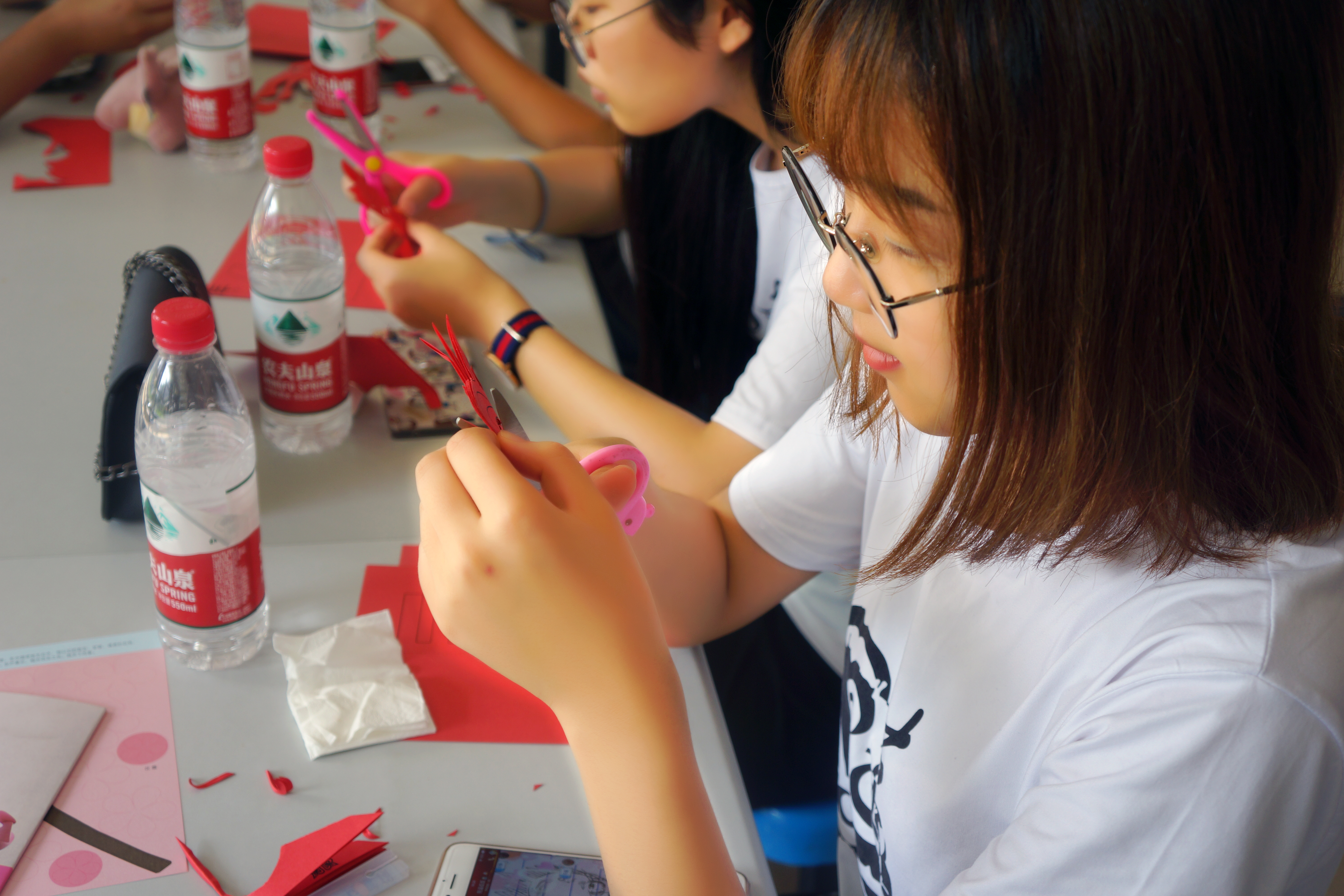 2018年7月27日,ylzzcom永利总站线路检测“艺韵晚霞”暑期实践队前往ylzzcom永利总站线路检测超豪学区食堂一楼,进行了以“艺韵之剪纸艺术”为主题的实践活动。 剪纸,又叫刻纸,是中国汉族最古老的民间艺术之一,剪纸是一种镂空艺术,其在视觉上给人以透空的感觉和艺术享受。剪纸在中国农村是历史悠久、流传很广的一种民间艺术形式。我们的文化在现代化,但是曾经滋养过整个民族辉煌历史的传统文化却以我们无法想象的速度流失着。一把剪刀,几张红纸贯穿了队员们的一下午的时光。由于是初学者,队员们的好奇心和求知欲是事前没有想到的,同时又发现这是一门考验细心与耐心的艺术。天气让人变得焦躁,而剪纸又让人变得安静。队员们并不像往常那样与彼此交谈,而是全部都全身心的投入于剪纸当中,电风扇呼呼的声音穿过耳膜,静的很享受。队员们有剪立体的花朵,有剪字体的,有的剪动物……种类繁多,但都是耀眼的红色。安静的下午并没有失去趣味,就这样,在活动结束之后,打扫了各自制造的垃圾,就等待把剪纸送给老人了! 一个民族的光荣,只能来自这个民族对传统文化的传承,更来自一种与时俱进的勇气。在活动中,加强了队员们对剪纸艺术的欣赏和创作,同时在剪纸的欣赏和创作中可以丰富队员们的知识,开阔了眼界。剪纸活动使队员们对中国民间美术有了初步的认识和了解,对中国传统文化中的象征手法和以物寓意的方法有了初步的感受。