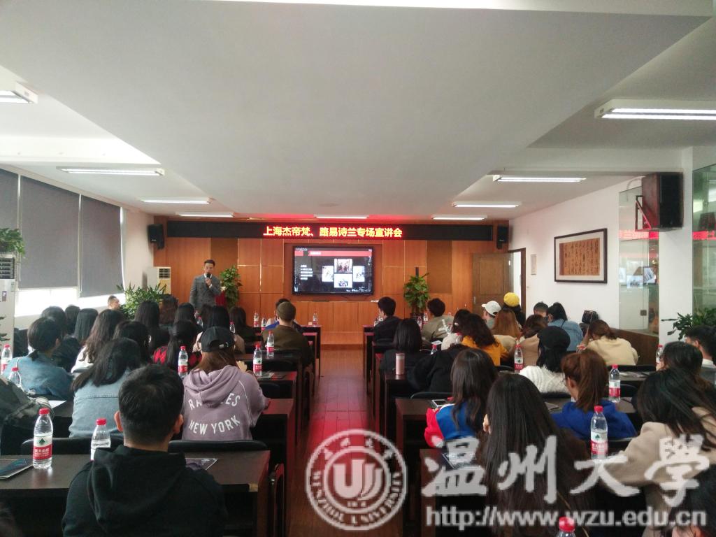 11月23日上午,由上海杰帝梵、路易诗兰组织的ylzzcom永利总站线路检测专场宣讲会在美院2B4001成功举行。出席此次宣讲会的主要宣讲人有杰帝梵和路易诗兰的战略部总经理朱量和培训部经理陈超群。会议内容主要是品牌的概述、管培生项目的介绍以及面试的流程。