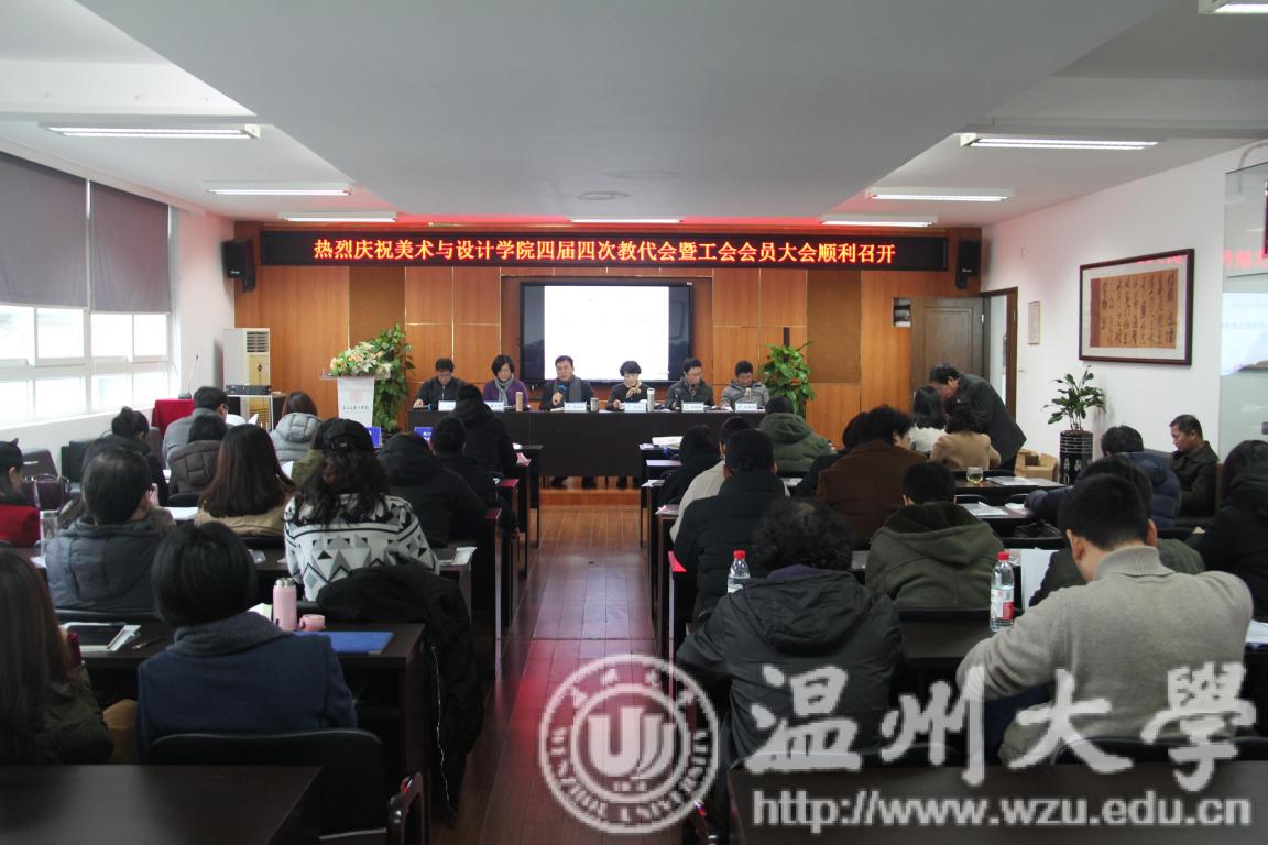 2019年1月16日下午,永利官网在美术楼2B4001召开第四届教职工暨工会会员大会第四次会议。全体教职工参加了大会,会议由学院党总支副书记杨振海主持。 在庄严的国歌声中,会议正式拉开序幕。院长李运河作《砥砺前行勇追梦奋楫扬帆谋新篇》为主题的学院工作报告,从教学及人才培养工作、学科科研工作、师资队伍建设、服务地方、国际化建设、基层党组织工作等几个方面回顾和总结了过去一年的工作。2018年,全院师生紧密围绕学校、学院中心工作,全面推进学院的建设和发展:扎实推进“两学一做”学习教育制度化常态化建设、落实“党支部建设年”工作、重视宣传及文化品牌建设;构建学科基础平台、深化教学建设和改革、强化实践教学、重视人才培养质量;夯实学位点、重视科研及成果运用、增强学术交流;在将人才引进与骨干培养同步推进,通过外聘教师不断完善队伍结构;积极推进国际化建设;积极搭建校地校企合作平台促进产教融合,全面服务于区域文化艺术事业。针对目前学院存在的不足和新的历史任务,提出了2019年的工作思路和发展思考。他还从教育的本义与教育的目的两方面,分享了作为教育工作者应该坚守育人初衷的意义和使命。谢副院长子静、张晓剑分别就分管工作进行了补充说明。 学院工会主席胡建南和纪检委员刘俊分别作《学院工会工作报告》和《学院财务审计说明》。大会还增补祝忠良、许丽慧为工会委员。党总支书记张丽萍总结讲话,她指出,刚刚过去的一年,是全院上下团结进取、奋力开拓的一年,也是学院各项工作取得丰硕成果的一年。所有成绩的取得,凝结着全体美院人的智慧与汗水。2019年全院上下要聚焦学校学院建设发展的新目标新使命,紧跟学校统一部署,认真落实学院“十三五”规划新一年的阶段任务,以党建思想为引领,进一步凸显学院核心竞争力。