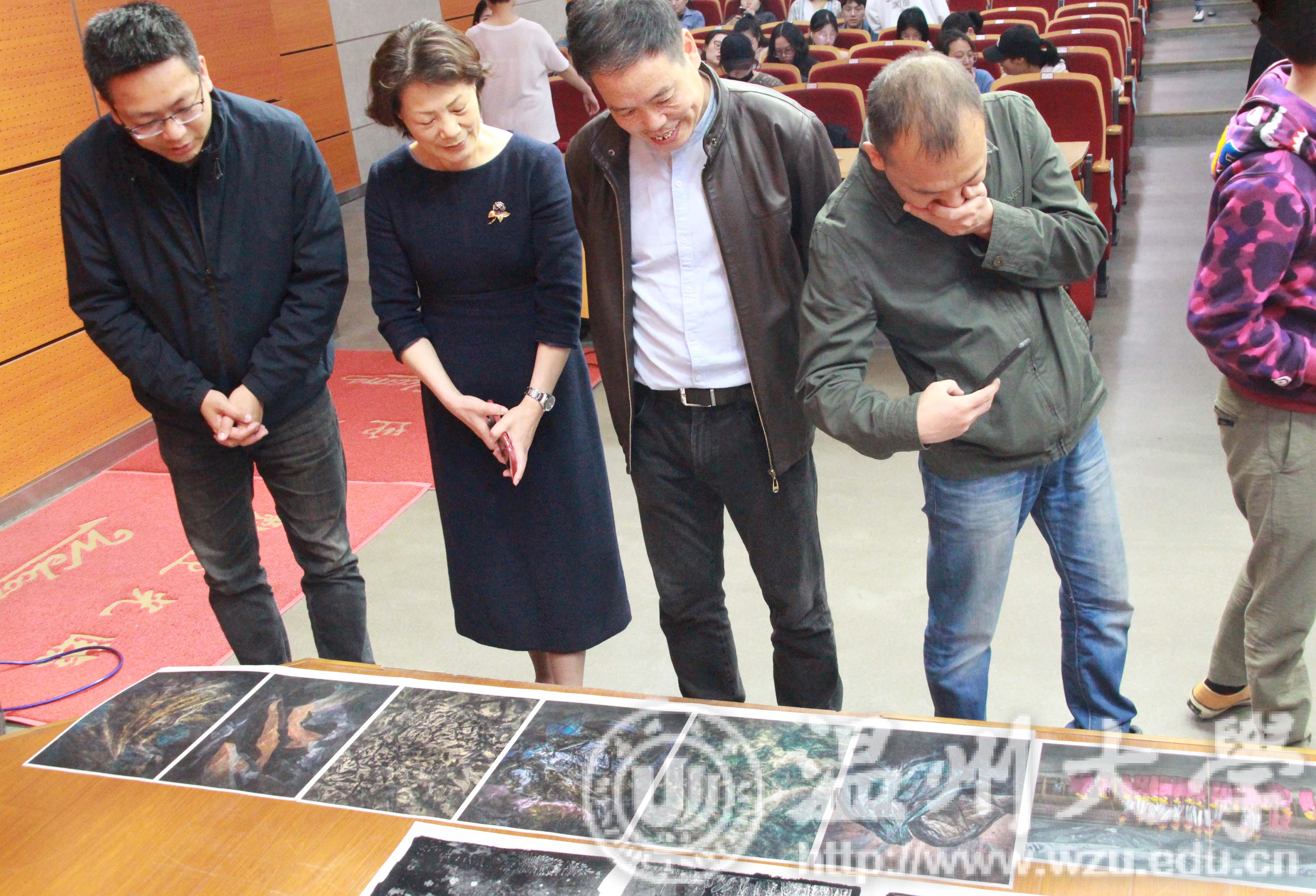讲座开始之前,颜劲松学长拿出了多幅形式各异的个人摄影作品以供观赏。同学们纷纷涌上前去,一睹其卓越风采,感受其独特魅力。首先,颜劲松学长讲解了“照相”与“造像”的区别,并对各类相机进行了简要说明,这展现出不同时期摄影技术的发展,表明摄影可以籍由技术与创意的结合,将“照相”转变为“造像”。技术不仅可以改变外在,更能够升华它的意义与内涵。讲座过程中,颜劲松学长通过对比自己的摄影原图与作品,向同学们介绍了了八种数码“造像”技术的可能性。他还毫无保留地分享了自己对摄影技术、后期制作等方面的心得体会。接着又耐心地讲述了长幅作品的拍摄及其制作过程。讲座逐渐进入尾声,到了涉及摄影相关问题的提问环节。颜劲松学长对提问者的问题一一作了解答。最后,他以一句话做结:“艺术,没有唯一性就没有生命力。”