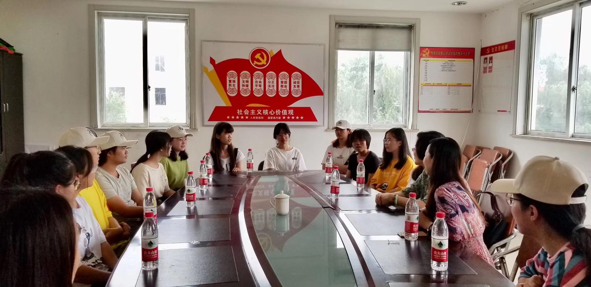 初到礼堂,谢院长一行受到了实践队队长及队员的热烈欢迎。随后,在队长的带领下,谢院长参观了小朋友们的上课地点及活动场所。参观完毕,谢院长、杨书记在会议室与支教队员进行了亲切的面对面交流。