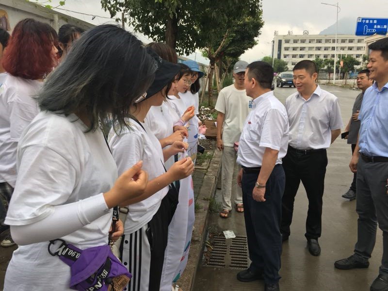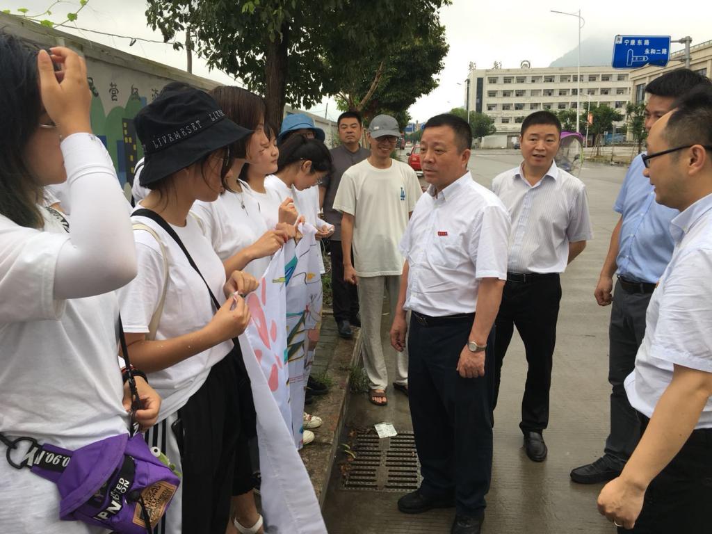 7月14日上午,ylzzcom永利总站线路检测党委书记谢树华,乐清市委常委、宣传部部长范晓东一行慰问正在乐清市宁康东路金海湾花苑附近开展“艺绘”暑期社会实践活动的永利官网师生,党校办主任蔡联群、ylzzcom永利总站线路检测党委书记叶正飞、副书记杨丽君、校团委副书记易招娣、副书记丁强、党校办督办科科长陈赞安、乐清市城东街道办事处相关同志陪同慰问。