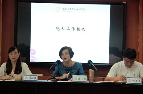 9月11日下午,永利官网新学期全体教职工大会在2B4001会议室召开,会议由党委书记叶正飞主持。 会上,叶正飞书记传达了暑期校党委理论中心组(扩大)学习会的会议精神。重点围绕校党委书记谢树华的《锚定三大目标实施七大战略推动跨越发展》学校发展战略主题报告、校长赵敏的《不忘初心争创一流全力推进高水平教学研究型大学建设》工作报告进行深入学习。会议指出,全校上下在建设“具有鲜明地域特色国内知名的高水平教学研究型大学”和锚定创建“省市共建”省重点校、“升博”、创建以侨为特色的“省部共建”高校的“三大目标”方面达成了重要共识,明确了科学定位,形成了统一目标。会议强调,学校部署的“质量立校、科研兴校、人才强校、依法治校、学科带动、学城联动、党建引领”七大战略,是未来一段时间学校谋求跨越发展重点战略举措,也是实施路径,下阶段学校和学院各项举措、任务都要围绕这个方向展开。强调全校师生必须统一思想,统一共识,以等不起、慢不得、坐不住的紧迫感、危机感、使命感全力推动三大目标的实现。对标学校发展目标结合美院发展实际,叶正飞指出,全院师生统一共识,同心同向,同频共振是学院发展的定盘星;破解问题,补足短板,特色取胜,是学院发展的动力源;从严治党,依法治院,以德治院是学院健康发展的根本保障。 会上,院长谢子静作学院工作报告。谢子静院长总结新班子组建两个多月来开展的工作内容和取得的不俗成绩,明确学院要紧随学校建设“具有鲜明特色的高水平综合性教学研究型大学”办学定位的大方向,锚定“三大目标”、实施“七大跨越”,助力学校推动跨越发展。并从学校办学定位出发,结合学院十三五发展规划纲要,分析研究当前美院发展的实际和存在的短板问题,提出了永利官网建设具有有较强影响力、特色鲜明的省内一流教学科研型艺术学院的办学定位。新时期赋予新使命,新学期承载着新任务,新班子肩负着新担当,会上谢院长围绕加强本科教育、人才队伍建设、学科建设、服务地方、国际化办学、研究生教育、继续教育等方面整体部署了学院发展下一步的工作思路及措施,并希望全院上下同心同德,群策群力,既要激情满怀,又要齐心协力,脚踏实地、奋力拼博,为美院的新征程谱写新的篇章。 会上,各分管院领导作工作部署。副院长胡文超部署学期教学工作,明确职责分工,并就永利官网本科教学、学生竞赛、教师发展等作重点部署。副院长顾任飞部署实验教学、科研及研究生工作,明确实验技术岗位职责分工,并就学院资产工作、研究生教育教学、科研工作等作重点部署。副书记杨丽君介绍学工部工作职责及分工,并就学生思政教育、就业工作、学生安全稳定意识形态及学院宣传工作等作重点部署。 此外,根据学院新修订学术委员会章程,会上就新一届学术委员会委员进行了选举。
