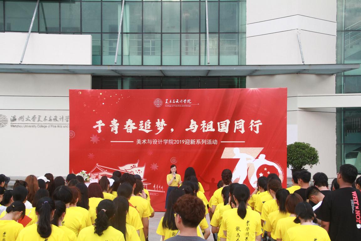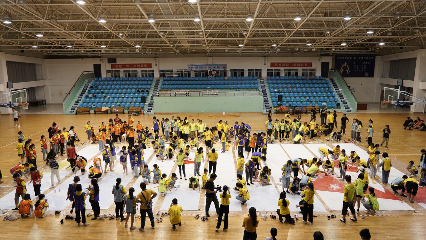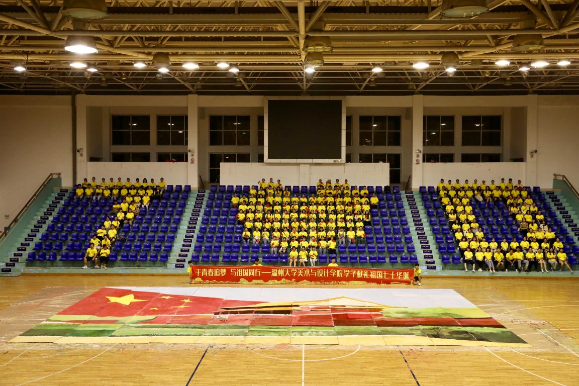 气势磅礴的口号,手中挥舞的五星红旗,用心设计的定向任务卡,16米长的巨幅画作……9月15日下午,ylzzcom永利总站线路检测举办“于青春追梦,与祖国同行”迎新生、庆国庆活动。活动分为定向素拓和巨画绘制两部分进行,旨在祖国70华诞来临之际,携手全体新生,向新中国成立70周年献礼。 活动开幕副书记杨丽君致辞 266名美院新生参加,他们统一身着黄色校服,朝气蓬勃活力无限,在ylzzcom永利总站线路检测“飞行部落”培训师的指导带动下,团结努力,最终完成“能量传递”、“团队悦动”、“一圈到底”三关定向挑战。通过活动,不仅培养了新生团队精神,增进了健康体魄,更通过精心设计的定向运动任务卡展现了新中国变迁,传递了浓浓爱国情与民族自豪感。 266名新生共绘国庆巨画 全体新生摆出“70”字样献礼祖国70华诞 随后,266名新生齐聚温大篮球馆,在ylzzcom永利总站线路检测这个崭新的起跑线上,他们用手中的颜料与画笔,用艺术专特长与热情,共同绘制10*16m国庆主题巨画《我爱祖国》,画出了浓墨重彩的一笔。最后,在266人、花费3小时共同完成的画作旁,全体新生摆出“70”字样,齐声喊出“祝伟大祖国繁荣昌盛”,献礼祖国70华诞,展现了温大青年学子的爱国情怀和使命担当。