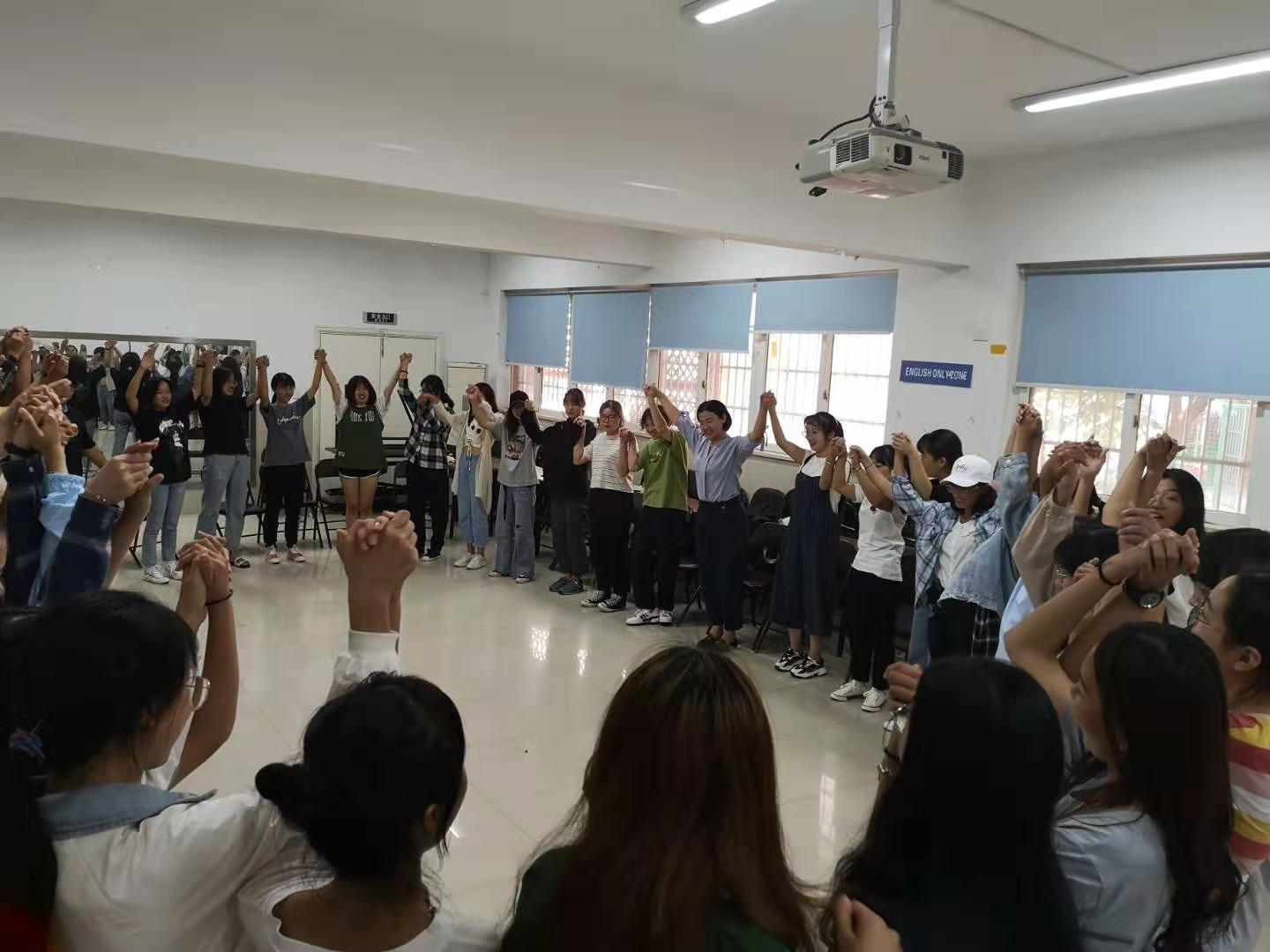 活动内容主要有“热身运动”,“松鼠抱大树”,“你有我没有”。其中“松鼠抱大树”这一游戏将活动气氛迅速升温,因游戏中“男女搭配”、“心有千千结”这两个特征,使得一张张陌生的脸庞迅速火热起来。而“你有我没有”这一游戏,让同学们真正地了解彼此熟悉彼此。小组成员伸出十个手指,当介绍的同学每说一个自己特有的经历或者特征时,没有相似经历的同学可将手指减少。第一个减到零的同学需自觉表演节目,游戏在紧张刺激的环境下进行,这快速拉近了同学们之间的距离,更好地了解彼此。最后,大家互相拥抱,感谢彼此,幸运相识。