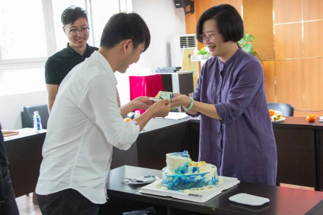 在座谈会结束之时,到场领导老师为毕业生们送上了蛋糕,表达了对毕业生们的美好祝愿。