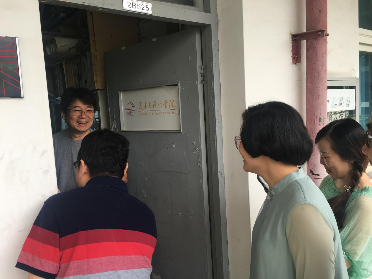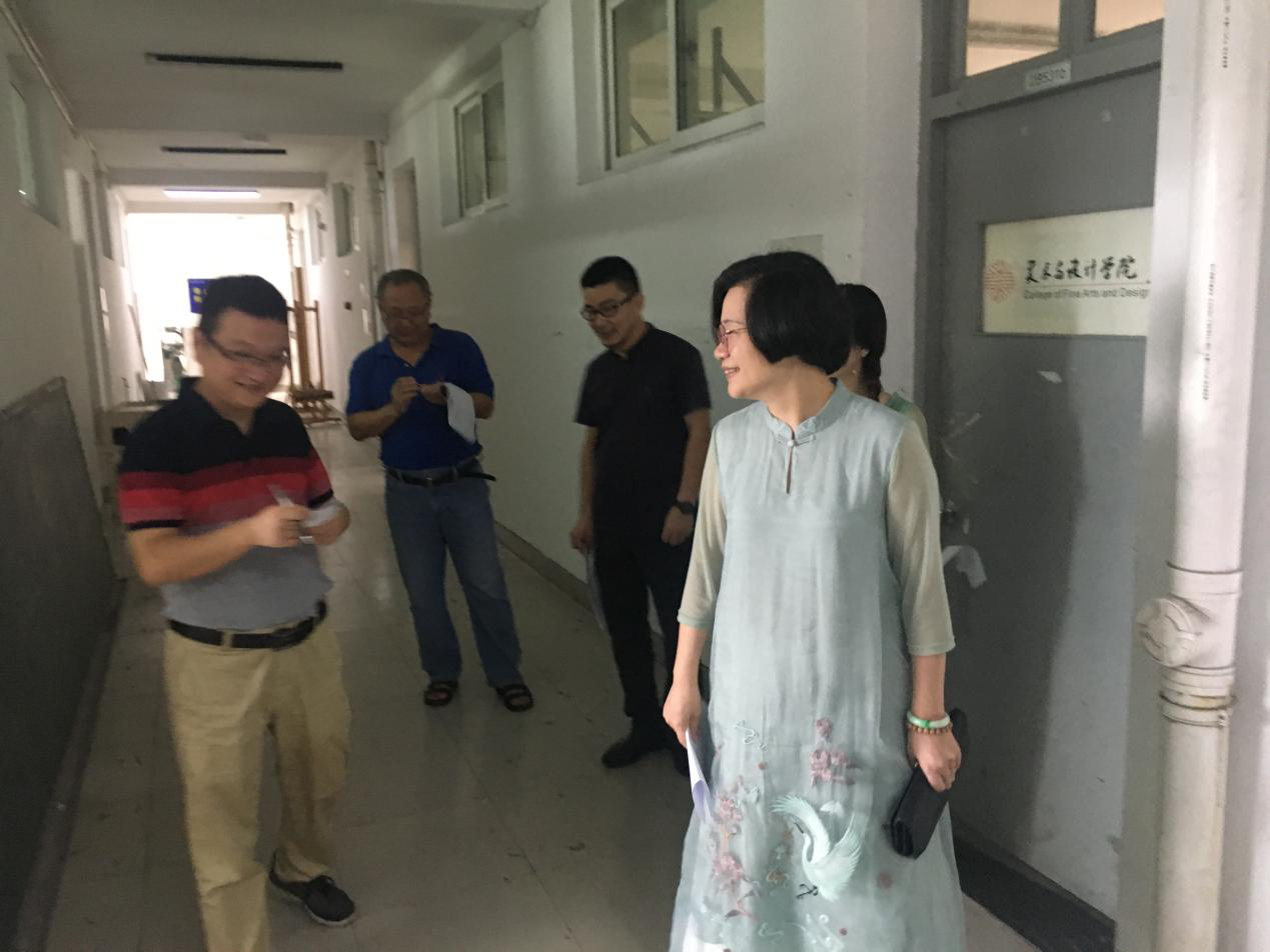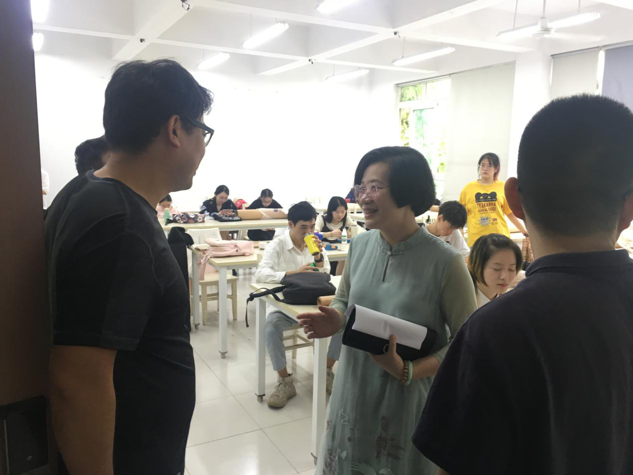 周四上午校领导潘玉驹、部门领导李密、校督导袁建国、美院领导谢子静、胡文超、美院教务科黄呼尔励,听了18美师3班《美术概论》张晓剑老师的课,张老师的课程幽默风趣有内涵。授课导入以3个为什么引导学生参与探讨,引入案例与实际例子引起学生深入思考,通过知识过渡与展开引导学生深化对问题的认识。张老师教态自然,语言表达逻辑强,在讲台、屏幕、学生之间游走保持与学生交流,达到了很好的积极互动与沟通效果,受到了听课领导的一致好评。 为了规范教学程序、提高教学质量、促进教风、学风建设。永利官网积极推行领导听课制度。领导干部提出宝贵意见,有助于教师发现问题,解决问题。 图:课堂生动打动听课人员 图:授课导入、知识过渡与展开 图:课后研讨 周二开课第一天,院领导谢子静、胡文超、顾任飞、杨丽君、教务科黄呼尔励巡查了永利官网各教室与课程,对师生们的上课状态及学院开学前教室设备等教学准备予以了肯定。 图:院领导、校督导讨论师生教学状态 图:院领导课间与教师交流 图:院领导探访教师工作室 图:部分课堂场景