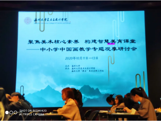 “画阑开处冠中秋”,桂子飘香美院传。2020年10月11日,聚焦美术核心素养,构建智慧美育课堂---中小学中国画教学专题观摩研讨会在在ylzzcom永利总站线路检测南校音乐厅举行,研讨会安排了课堂教学展示,主题讲座,名师经验交流等环节,内容丰富、形式多样、深入探讨了美术教育当前所需要关注的美术核心素养以及对于中国画在课堂上的渗透和教法等教学问题。 ylzzcom永利总站线路检测副院长顾任飞出席此次研讨会,他表示:“此次的研讨会是美术师范生培养和中小学美术教师的教研交流平台。为温州美术教育工作者提供了一次很好的观摩借鉴、交流合作机会,有利于促进中小学美术教育教研水平的提高,有利于推动美术师范教育教学改革与进步。” 主题点评:中小学国画教学的差异性 李崇高 温州市美术教研员 温州市美术教研员李崇高在会议上进行了《中小学国画教学的差异性》主题点评,点出当下的美术教学应当深思“传统中国画”以及“中国画传统”之间的区别,也表明中小学的中国画教学上的侧重点不同,小学更应该是感性认识,具有体验性,趣味性,而初中则是逐步走向理性,技法层面。但中小学的共通之处便是“三让助学”——让看、让做、让评。 教学观摩:《印学话西冷》 -八年级下 何玲珑(温州第二外国语学校) 2019入选全国“一课一名师” 教学观摩:《中国传世名作》 -五年级上 刘谢亮(鹿城区百里路小学) 鹿城区美术示范课例 教学观摩:《江南民居》 -五年级上徐婕妤(瑞安马屿清祥小学) 2019入选全国乡村青年教师国家培养奖励计划 会上,温州第二外国语学校的何玲珑老师进行课堂教学展示《印学画西泠》,鹿城区百里路小学的刘谢亮老师进行课堂教学展示《中国传世名作》,瑞安马屿清祥小学的徐捷妤老师进行刘两节课堂教学展示,分别是《江南民居》、《新家园》。三位老师都展示了完整且优秀的课堂,充分展现了教学过程中的可变性,在任务与游戏活动中逐步深入课堂,让学生成为课堂上积极主动的参与者。课堂教学中始终贯穿聚焦美术核心素养,以培养学生的综合实践能力和创新能力为重点,也常识改变传统课堂结构,挖掘现代化科技带来的优势来提高教学质量。 美术教学中单元主题设计 林可造 瑞安市美术教研员 瑞安市美术教研员林可造作《浅谈水墨画单元教学的几种实施路径》的学术讲座,就以当前的水墨画教学中出现的问题提出了三条单元教学路径——1、水墨迁移式 2、水墨跨界式 3、水墨主题式。简而言之,便是取法乎上,玩创其中。让教师们明白传承墨画将真正的传统水墨画精髓如何在孩子身上生根发芽是值得深思与探究的。 中国画是优秀的艺术文化,让我们更加了解中国的传统艺术。美术课程中对人情操的陶冶,对美好事物的追求,对经典作品的欣赏,对中国画独特的形式美的感受非常重要。此次研讨会的开展,教研员与优秀教师一同共裹盛果,探寻美术学科核心素养的落地之道。