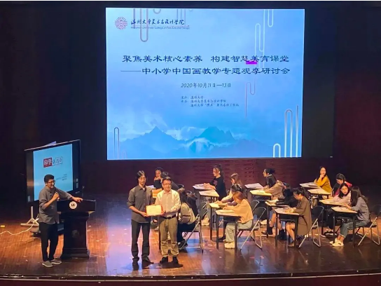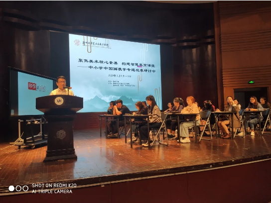 “画阑开处冠中秋”,桂子飘香美院传。2020年10月11日,聚焦美术核心素养,构建智慧美育课堂---中小学中国画教学专题观摩研讨会在在ylzzcom永利总站线路检测南校音乐厅举行,研讨会安排了课堂教学展示,主题讲座,名师经验交流等环节,内容丰富、形式多样、深入探讨了美术教育当前所需要关注的美术核心素养以及对于中国画在课堂上的渗透和教法等教学问题。