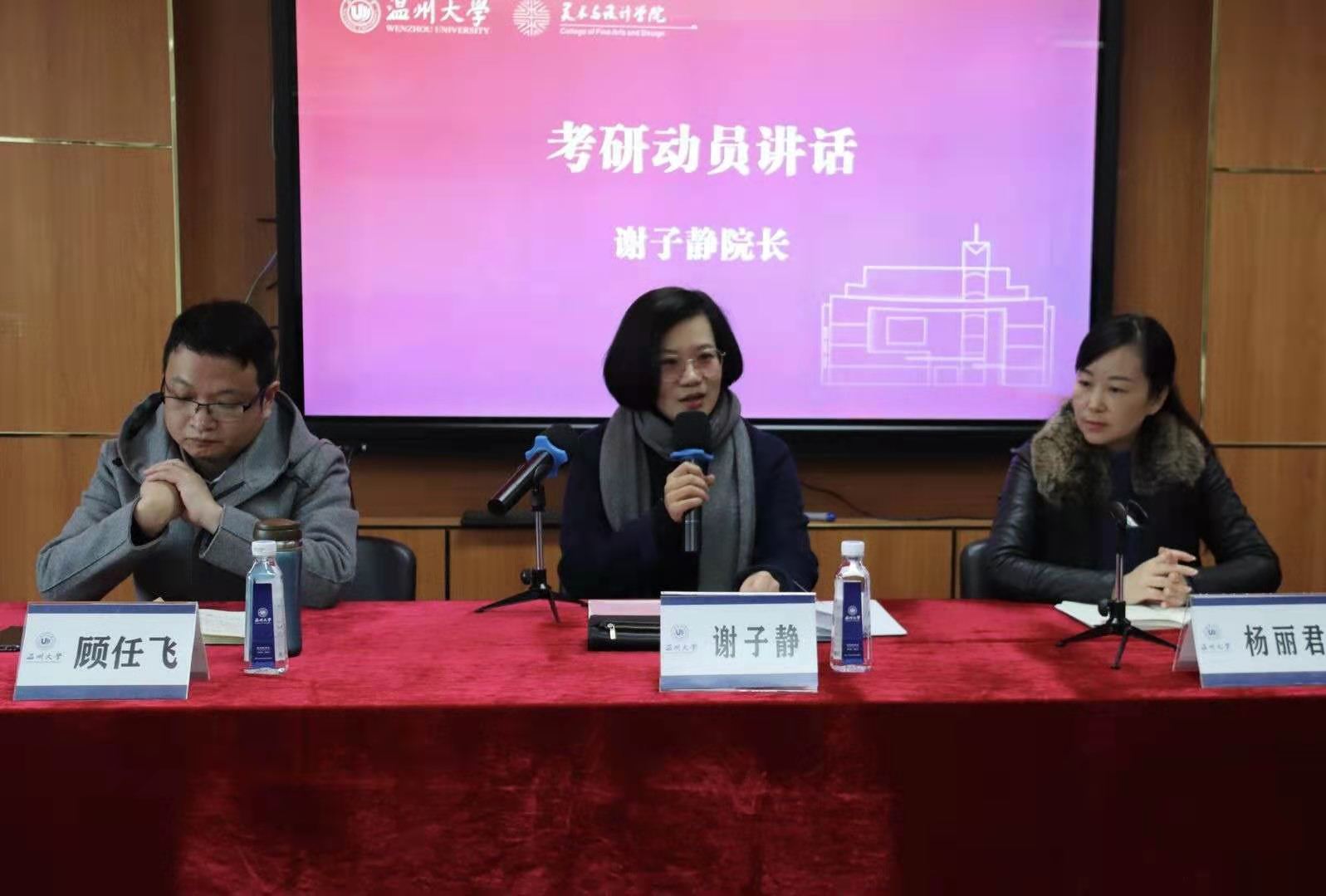 2020年12月16日下午14点,ylzzcom永利总站线路检测2018级考研动员服务月暨“艺·研·帮”系列活动启动仪式在美院综合楼2b4001顺利开展。出席本次活动的嘉宾有院长谢子静、党委副书记杨丽君、副院长顾任飞、学工办老师以及2018级考研学生代表,活动由美院党委副书记杨丽君老师进行主持。此次动员大会旨在指导学生如何在考研前做好充足的准备,在未来更好地发展。