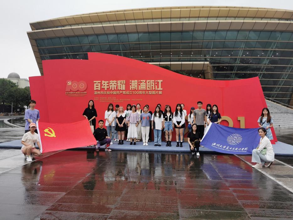 6月27日下午,ylzzcom永利总站线路检测学生党支部赴温州大剧院参观“百年荣耀·潮涌瓯江”温州市庆祝建党100周年大型图片展,开展主题党日活动。本次主题党日活动围绕“宣誓”、“观影”、“参观”三个环节开展。在主题党日活动室,在支部书记汪成龙的带领下,党员们面对党旗整齐列队,高举右手,重温入党誓词。宣誓完毕后,同学们依次坐下观看影片,影片中播放着革命先烈们英勇抗争的事迹,一幕幕悲壮的场景,让同学们对于担当使命,不怕牺牲、英勇斗争,对党忠诚的伟大建党精神有了更深刻的了解。