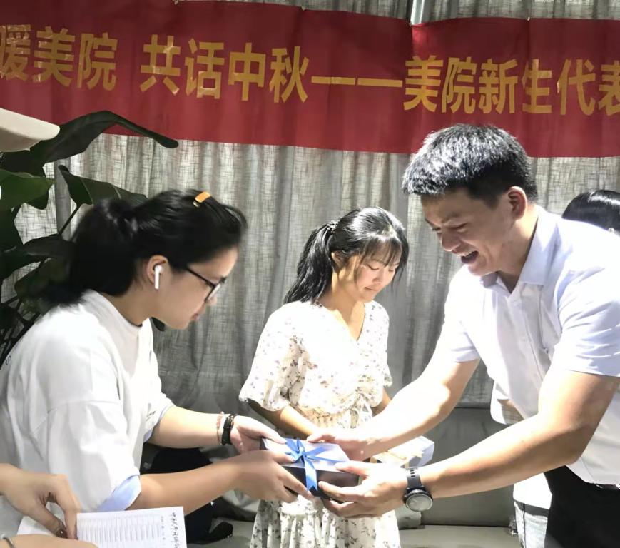 最后,叶书记为每位新生代表送上刻有温大LOGO的特制月饼,学院为每位新生准备了一个月饼,与新生一起喜迎中秋佳节,喜迎未来的美好大学生活!