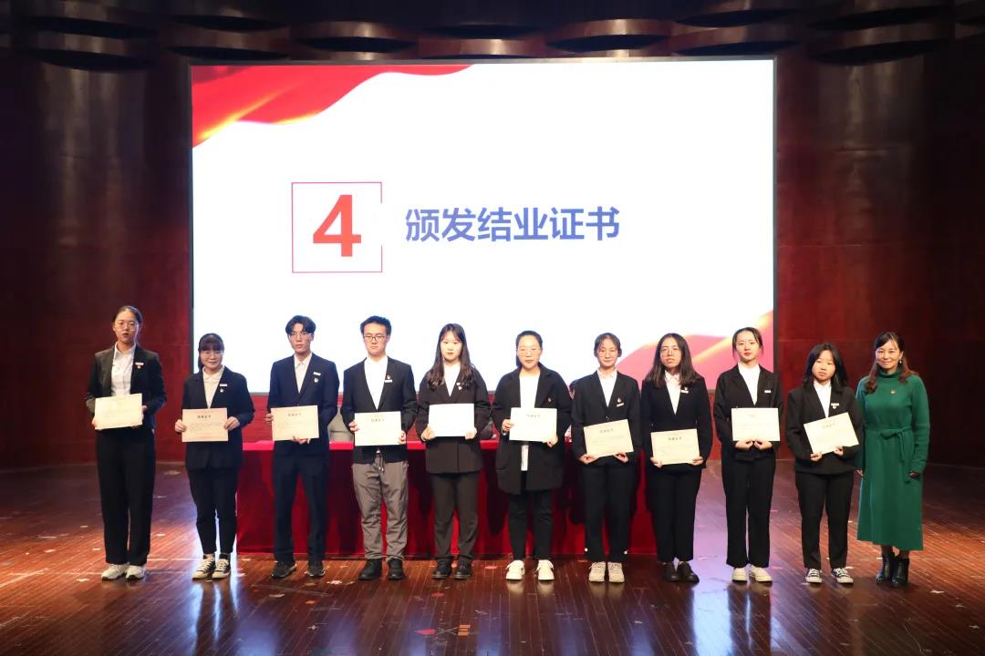 2021年11月17日,2021-2022学年第一学期中共ylzzcom永利总站线路检测委员会党校学院分党校(南校联合)党员骨干培训班结业典礼在南校音乐厅顺利举行。数理学院党委副书记章志图老师,生命与环境科学学院党委副书记赵崇峰老师,ylzzcom永利总站线路检测党委副书记杨丽君老师和全体124名学生党员骨干出席了本次结业典礼。本次结业典礼由ylzzcom永利总站线路检测党建负责老师王颖主持。一、奏唱国歌此次结业典礼在庄严的国歌中拉开序幕。二、学员代表发言首先,学员代表徐严俊同学代表全体学员对培训班老师表达了感谢。其次,他表示,经过一周的党员骨干培训,大家深深感受到了支部党务工作的严谨性和重要性,同时也对支部党员各项流程及规章制度有了更深刻的理解,他坚信大家都会努力做好党员流程的每一步,为成为基层工作的坚强后盾不懈努力。最后,徐严俊同学代表本次参加党员骨干培训班的全体同志郑重承诺:一、努力学习,以过硬的理论知识,武装自己的头脑,积极发挥党员的先锋模范作用。二、以执着的信念,优良的品格,丰富的知识,过硬的本领,永做走在时代前列的先进者、开拓者、奉献者。三、宣读结业学员、优秀学员和最佳理论学习奖名单一周的时间,党员骨干们在培训中凝聚了思想、积累了知识。党员骨干培训班班长张柠同学公布并宣读了结业学员名单及表彰优秀学员的决定。本次党员骨干培训班共124名学员参加,有113名学员顺利结业。其中彭靖涵等25名同学被评为“优秀学员”,朱沁怡等9名同学被颁发“最佳理论学习奖”。四、与会领导为结业学员、优秀学员和最佳理论学习奖获得者颁发证书杨丽君老师为学员代表颁发结业证书章志图老师为优秀学员代表颁发优秀学员荣誉证书赵崇峰老师颁发最佳理论学习奖至此,2021-2022学年第一学期中共ylzzcom永利总站线路检测委员会党校学院分党校(南校联合)党员骨干培训班结业典礼顺利结束。一周的培训,时间不长,但希望大家时刻牢记一名党员的责任和义务,以优秀党员的标准严格要求自己,做到忠诚、干净、担当、以身作则,不断提高党务工作技能,以实际行动为我校的基层党组织建设添砖加瓦。