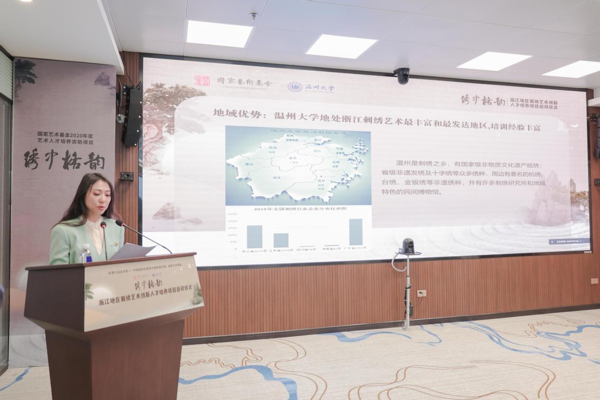 近日,由国家艺术基金资助,ylzzcom永利总站线路检测承办的“浙江地区刺绣艺术创新人才培养”项目启动仪式在ylzzcom永利总站线路检测隆重举行。温州市文化广电旅游局、中国非遗保护协会、ylzzcom永利总站线路检测有关领导,项目导师、专家以及来自北京、上海、江苏、浙江等地的学员共计40余人出席。