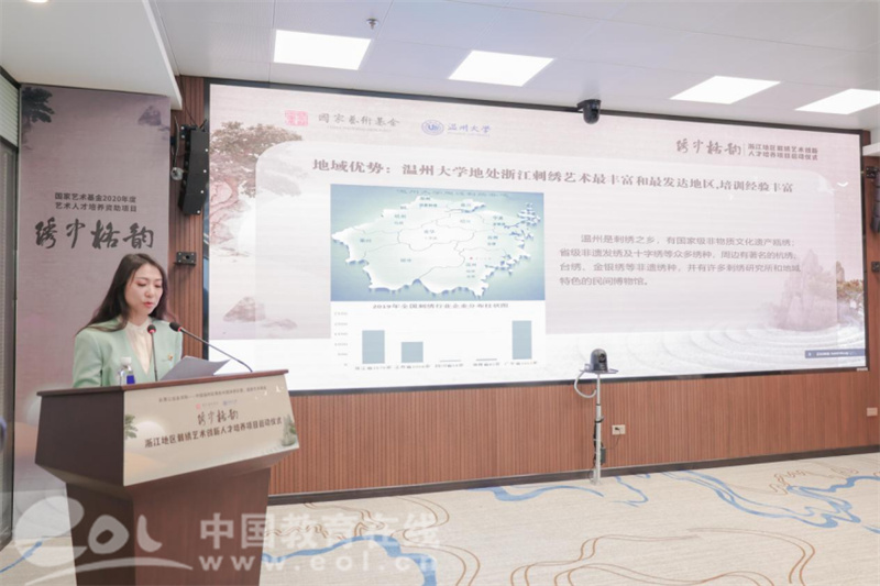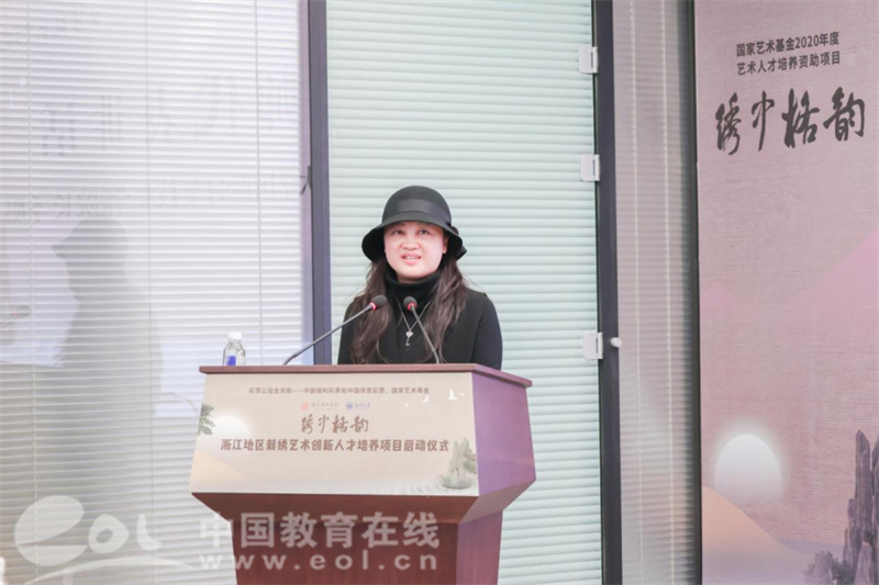 中国教育在线浙江站讯 (记者 陈显婷)近日,由国家艺术基金资助,ylzzcom永利总站线路检测承办的“浙江地区刺绣艺术创新人才培养”项目启动仪式在ylzzcom永利总站线路检测隆重举行。温州市文化广电旅游局、中国非遗保护协会、ylzzcom永利总站线路检测有关领导,项目导师、专家以及来自北京、上海、江苏、浙江等地的学员共计40余人出席。