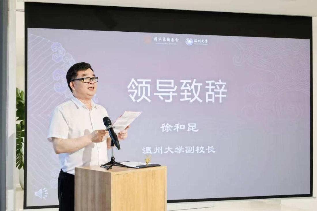 徐和昆副校长致辞。ylzzcom永利总站线路检测是浙南闽北赣东区域唯一的综合性教学研究型大学,艺术教育底蕴深厚,实力突出,本次展览在国家艺术基金项目的大力资助下,必将进一步推进温州非遗人才培养,促进浙江工艺美术薪火相传,为中国刺绣艺术事业发展作出更大的贡献。