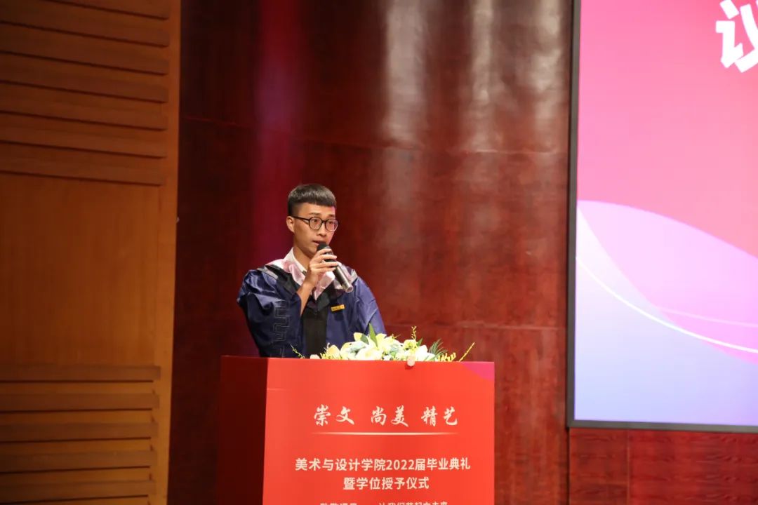 大一,是青涩与彷徨。大二,是觉醒与呐喊。大三,是奋进与拼搏。大四,却是不舍与惜别。回首望去这四年,往日的酸甜苦辣都留在了这美丽的校园中。路,一直在走,带着感动和感激,毕业学子们将满载自信而行!毕业了,也许他们即将远行,可不忘的是大学四年难忘岁月带给他们的一切。一幕幕的场景就像一张张绚烂的剪贴画,串联成一部即将谢幕的电影,播放着快乐和忧伤,记录着毕业前的青春和过往,这四年,不仅收获了友谊爱情,也收获了希望!2022年6月22日上午十点,“致敬遇见——让我们艺起向未来”ylzzcom永利总站线路检测2022届毕业生毕业典礼暨学位授予仪式于南校音乐厅隆重举行。在慷慨激昂的国歌中,2022届毕业生毕业典礼暨学位授予仪式拉开帷幕。院长谢子静教授为毕业生致辞。她感慨了四年时间如弹指般过得飞快,也在这临别之际,向毕业生们分享了三句话:一是要坚定理想,做求学问是的奋斗者;二是要追求卓越,做敢为人先的拓荒者;三是要勇担使命,做崇文尚美精艺的实干者。最后,谢子静院长祝愿大家在未来的日子里,从见微知著里避免俗手、从底线思维里做好本手、从秀外慧中里做好妙手。同时也叮嘱大家,“人生海海、山山而川,将来你们无论身处何方,学院会一直关注你们、牵挂你们,学院是你们永远的港湾!”班主任代表王薇老师代表美院全体老师和班主任讲话。他说道:“我希望你们的爱情是真诚的纯洁的;你们的工作是端正的认真的;你们的生活是健康的本色的。希望你们保持对生活的激情,做一个思考的人,做一个有担当的人,最重要的是要做一个快乐的、热爱生活的人。”毕业生代表聂枭雄、倪千茜同学发言。他们回忆了大学数年在温大的学习与生活经历,并表达了毕业生们即将离开的不舍和即将高飞的凌云壮志。精彩绝伦的发言引起了在场其他毕业生们的共鸣,掌声久久回荡在在场的每一位同学的心中。接下来,党委副书记叶如芳老师宣读了2022届“省级优秀毕业生”名单,并由党委书记叶正飞老师颁奖。副院长顾任飞老师宣读“2022届毕业生校友联络员”名单,并由2018级美院全体班主任为他们颁发聘书。毕业生们和老师互送礼物与祝福。师生情深,依依不舍、欲说还休!真挚地祝愿每一位同学带着学校和老师们的祝福奔赴前程、前程似锦!石建林老师带领2022届全体毕业生进行“廉洁从业倡议书“宣誓仪式。副院长胡文超老师宣读学位授予决定。院长谢子静教授为全体2022届毕业生进行学位授予仪式,执“拨穗礼”,并合影留念。仪式结束,全体师生一齐奏唱校歌。“大哉师道天下尊,承往哲兮启后人。厚培德本,深濬智源,学成致用教化谆……”全体师生齐唱校歌。在歌声中,美院全体毕业生正式告别镌刻着他们青春足迹的温大校园,迈向更大、更高、更远的人生舞台,全体美院毕业生必将秉承“崇文、尚美、精兿”的院训,争做堪当民族复兴重任的时代新人,创造属于自己的、温大的荣光。随着毕业典礼的顺利落幕,万语千言凝结于此,四年前,你们从四面八方而来,与温大结缘、以美院为家,明天,你们将奔赴祖国各地,以温大为荣,展美院风采。你们永远都是美院最好的校友,永远都是美院最宝贵的学子,无论走到哪里,无论在什么岗位,请莫忘你们身后还有母校和学院殷切的希望、师长们期盼的眼光,衷心祝愿美院2022届毕业生毕业快乐。