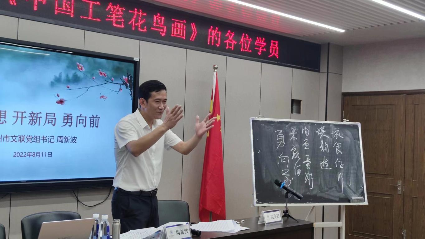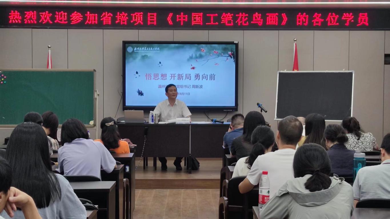 2022年8月11日下午两点,在由ylzzcom永利总站线路检测举办的省培项目——《中国工笔花鸟画》课程中,温州市文联党组书记周新波同志受邀对全体参加此次培训的中小学教师进行了以“悟思想,开新局,勇向前”为主题的专家讲座交流。ylzzcom永利总站线路检测院长谢子静、副院长胡文超、继续教育中心主任邹青、团委指导老师石建林,以及全体参训教师一同参与此次活动。