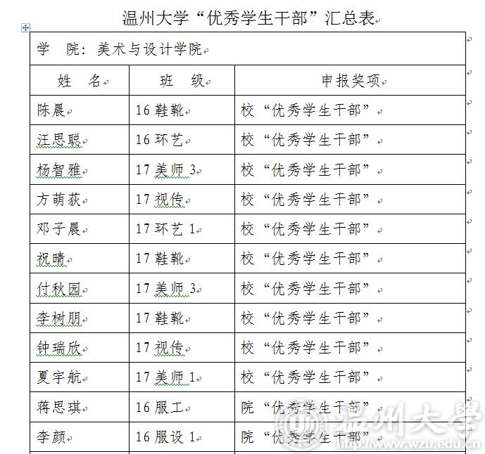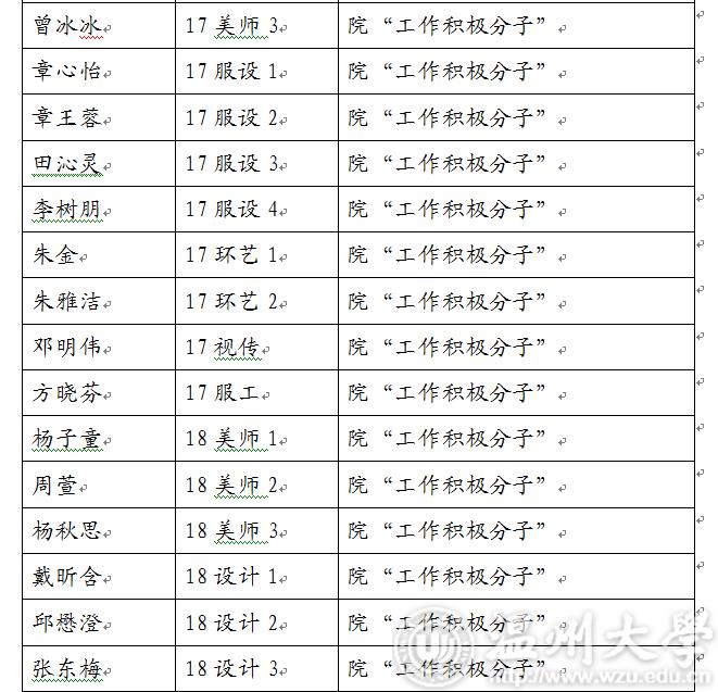 现将2018-2019学年第一学期ylzzcom永利总站线路检测“优秀学生干部”“工作积极分子”名单公示如下,如对评选结果有异议,请于3月5日17:00前及时联系美术学院学生科。