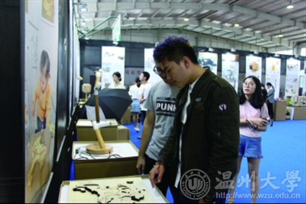 10月22日至23日,省第八届大学生工业设计竞赛在ylzzcom永利总站线路检测举行。省内各大高校的600余名设计精英以木材或纤维制品为主,结合其他材料,进行了一场创新创意大比拼。经评委打分评审,193件作品入围决赛,最终选出一等奖33项。图为温大学生在现场观看参赛作品。