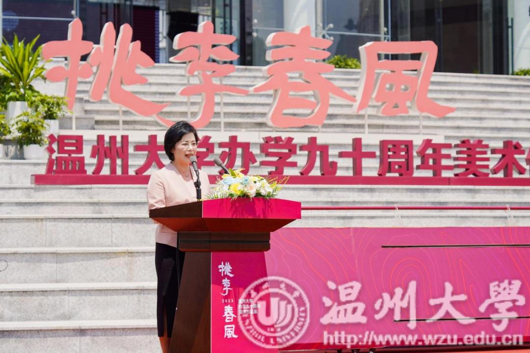 桃李不言,满园芳菲。5月13日,ylzzcom永利总站线路检测隆重举行“桃李春风——ylzzcom永利总站线路检测办学九十周年美术作品展”开幕式暨ylzzcom永利总站线路检测美术馆开馆仪式。浙江省教育厅党组成员、副厅长陈峰,中国美术学院党委书记金一斌,吉林艺术学院党委书记张东航,温州市委常委、宣传部部长施艾珠,ylzzcom永利总站线路检测党委书记、温州市委组织部部长张健,ylzzcom永利总站线路检测原党委书记谢树华,浙江展览馆馆长汪健,原温州师范学院美术系首任系主任、教授叶玉昶等众多领导嘉宾出席,温州市相关部门负责人、艺术名家、温大校友、师生代表等近300人参加。ylzzcom永利总站线路检测校长赵敏主持活动。