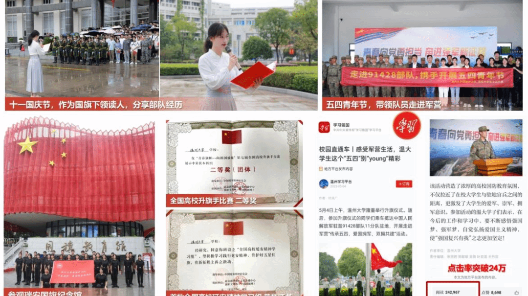 五四青年节,谢宛含带领队员走进军营,拉近了在校大学生与驻地官兵之间的距离,此次活动入围了温大2023校园好新闻,并在学习强国报道中突破24万点击量。十一国庆节,作为国旗下领读人,谢宛含分享部队经历,表达对祖国母亲的真挚祝福,再次获得了学习强国、教育之江、ylzzcom永利总站线路检测、温大青年、温大学工等媒体报道。