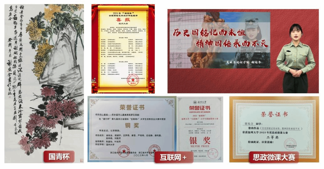 在竞赛领域,谢宛含同样表现卓越。在"建行杯"第九届浙江省国际”互联网+”大学生创新创业大赛中,她以侨乡留守儿童美育筑梦引领者为选题荣获铜奖。此外,她还在ylzzcom永利总站线路检测思政微课大赛和“国青杯”全国高校艺术设计中以优秀的演讲和绘画技能获得二等奖。不仅在竞赛中屡获佳绩,她主持国创课题和大创课题均成功结题,还申获外观设计专利1项,发表学术论文2篇。谢宛含曾说,“在科研的征途中,我有一半的时间都在奔波,走的每一步不一定都有风景,但坚持走一定可以看到光。”